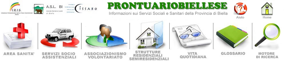 SITO IN MANUTENZIONE Per informazioni sui posti liberi nelle strutture residenziali telefonare ai numeri : 800 545455 o 015 8352418 Questo sito contiene informazioni utili alle persone residenti in Provincia di Biella, con un'attenzione particolare ai disabili e agli anziani. Gli argomenti sono divisi in sezioni: guarda le icone in cima alla pagina. Per indicazioni sull'organizzazione dei contenuti e su come muoverti nel sito, apri la pagina Aiuto E' inoltre possibile (oltre chiamare gli uffici competenti indicati su ciascuna scheda ed opuscolo) rivolgersi ai seguenti servizi informativi per essere aiutati: